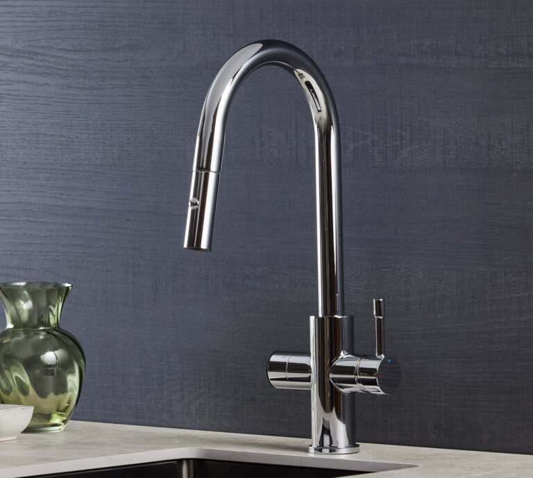 Each Sapphire Pull Out tap delivers hot, cold, 98°C boiling and filtered drinking water from a single outlet, removing the need for kettles and filter jugs while keeping worktops clear. Digital touch control allows boiling water to be activated by a deliberate three-second press, with red illumination clearly indicating when boiling water is in use.