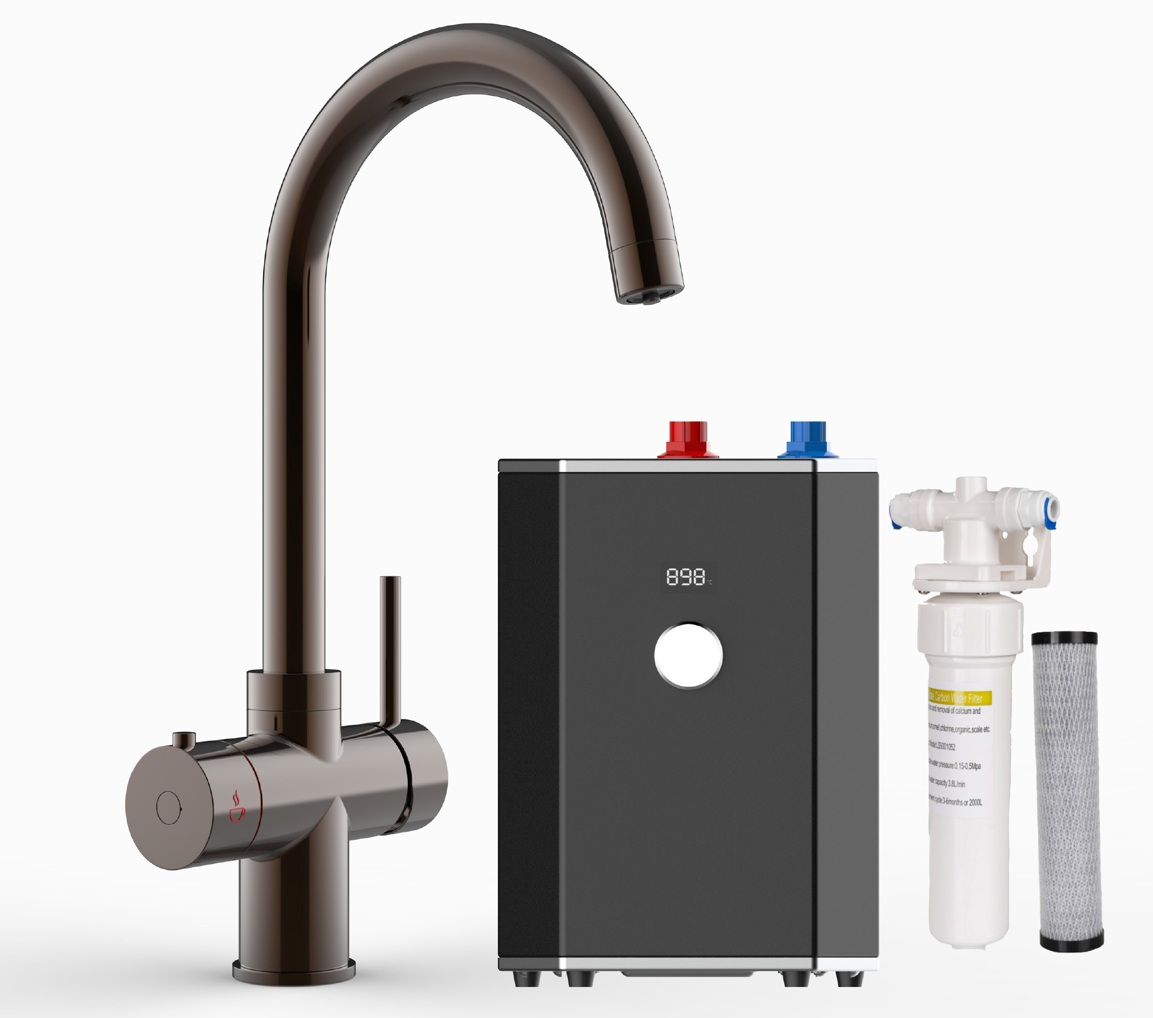 Underneath its graceful curves sits a compact 2.4 litre boiler tank, neatly tucked away below the sink. Simply connect to your mains water and power, and the system draws in fresh water, heats it to near-boiling temperatures, then refills and reheats automatically. With an instant boiling water tap on hand, you’ll have 98 °C water ready for your morning cuppa, green tea infusion or rapid jar-sterilising in seconds.