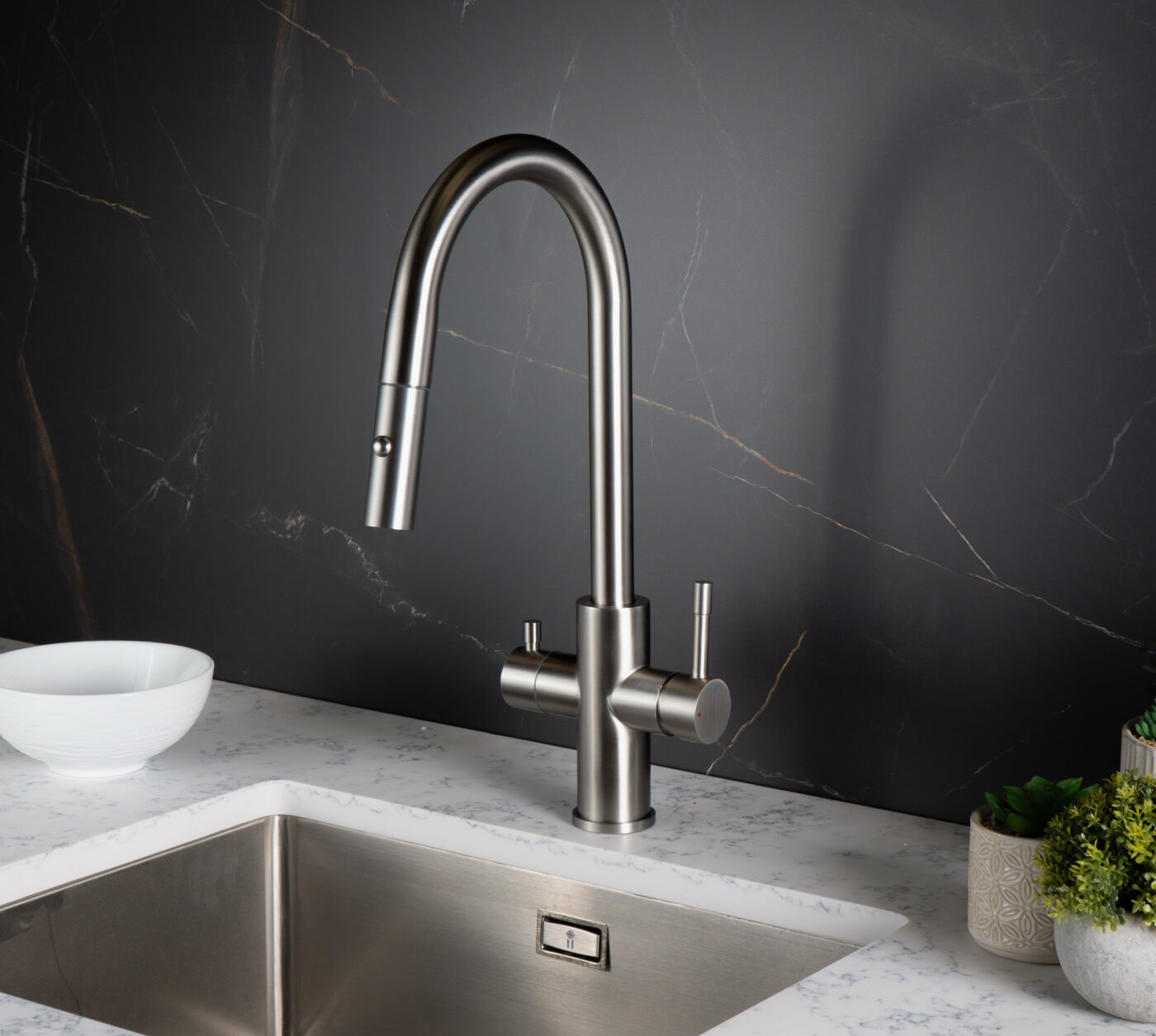 The forward-only handle allows for installation in tighter spots, while the pull-out spout gives full flexibility for rinsing dishes, cleaning or filling large pans. The compact 2.4-litre digital tank fits neatly beneath your sink, providing instant boiling water without taking up valuable storage space.