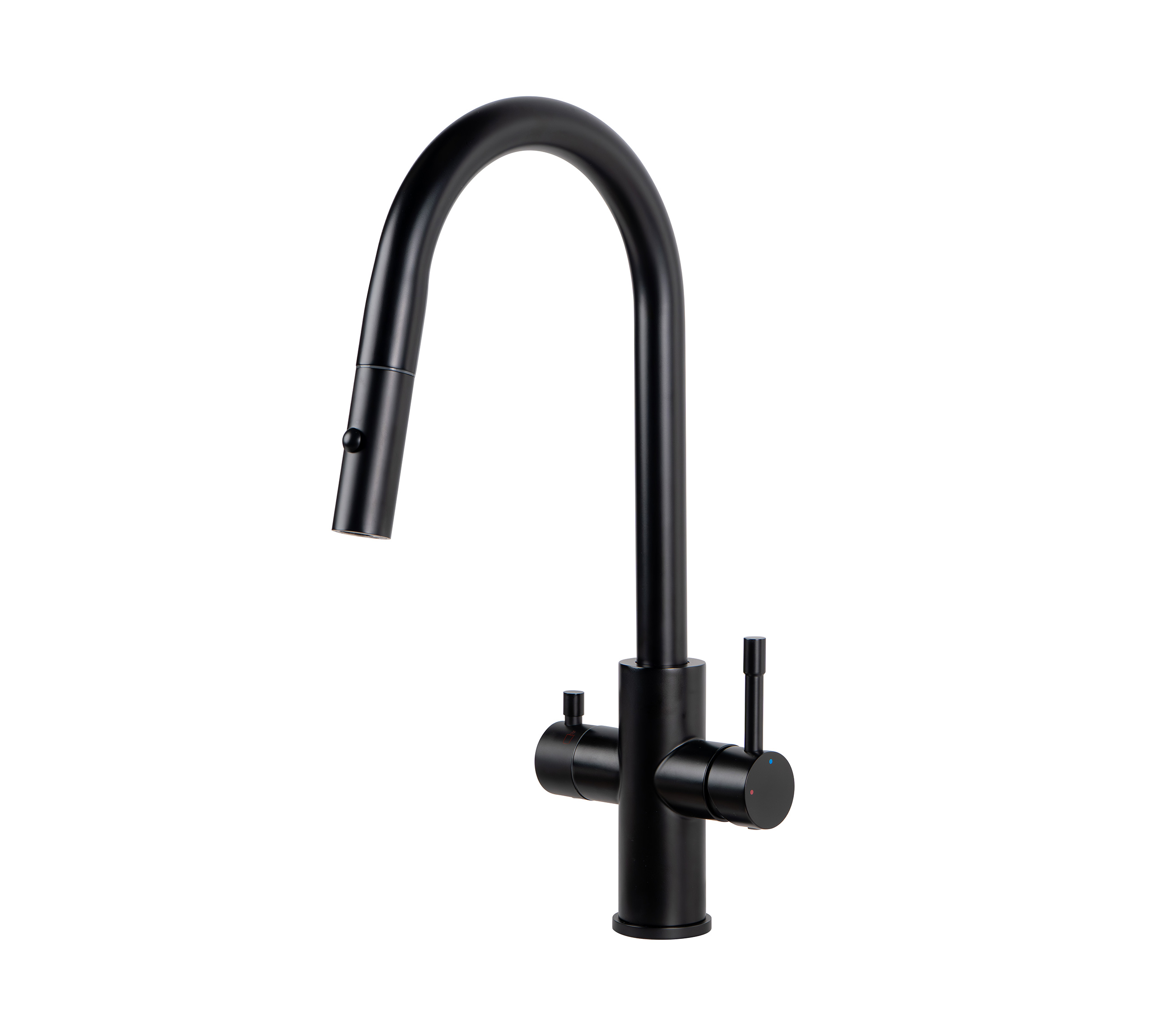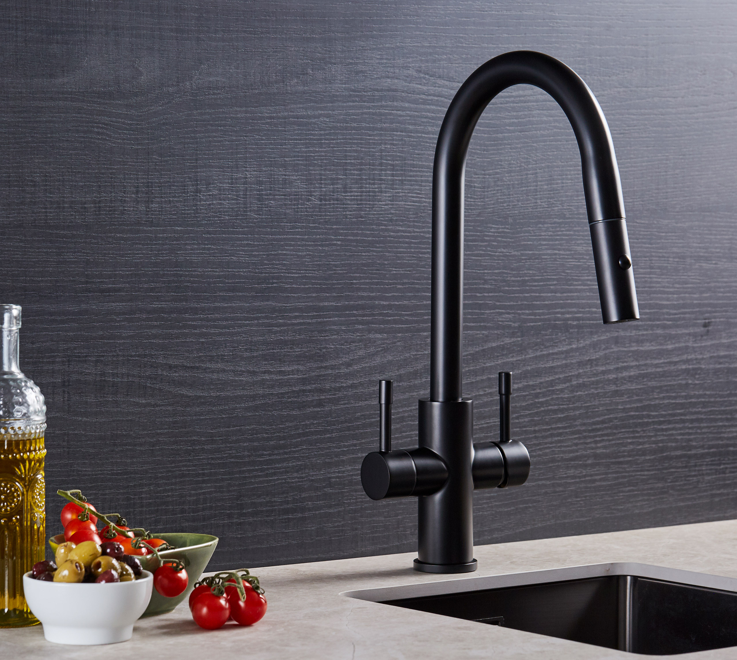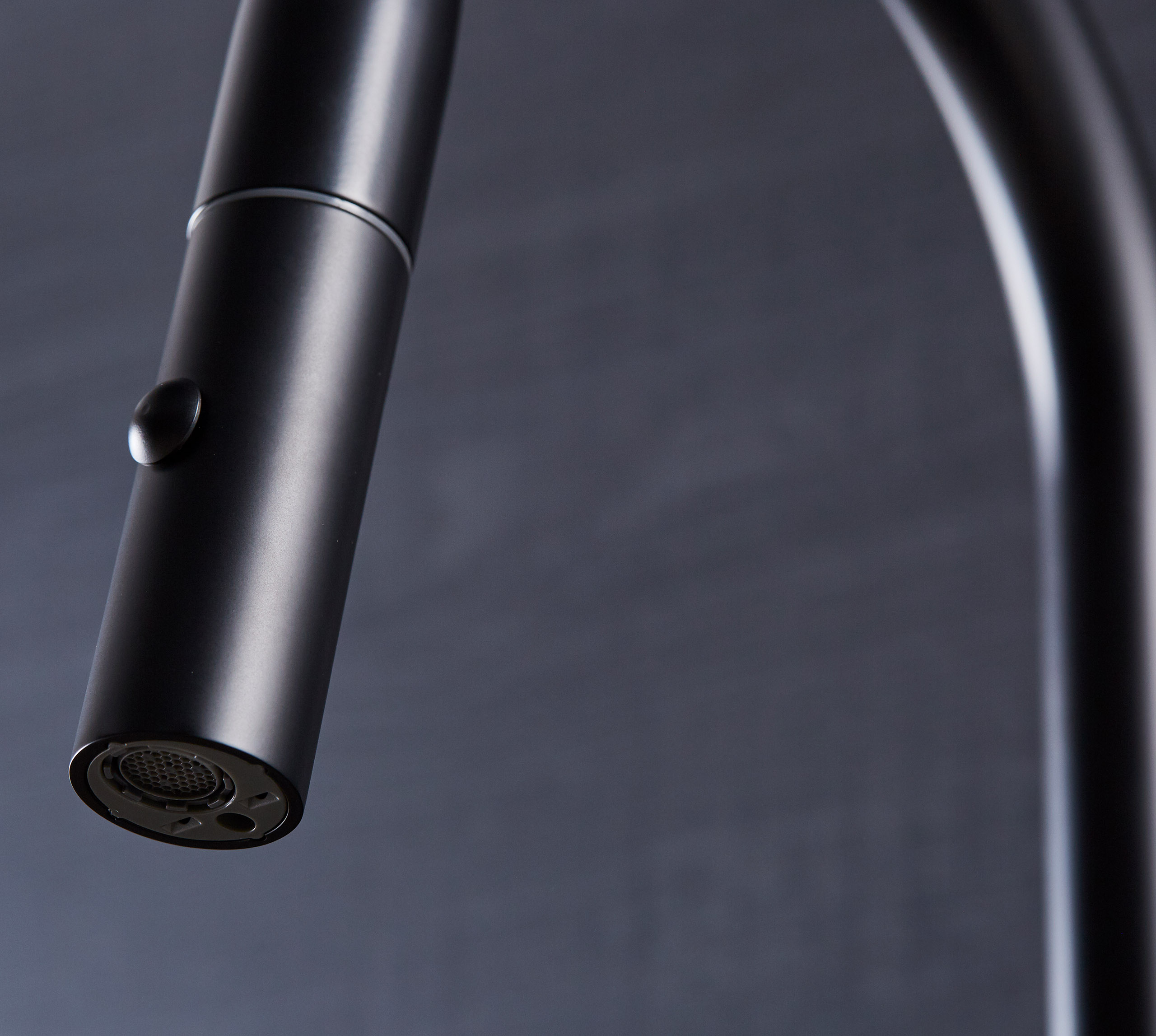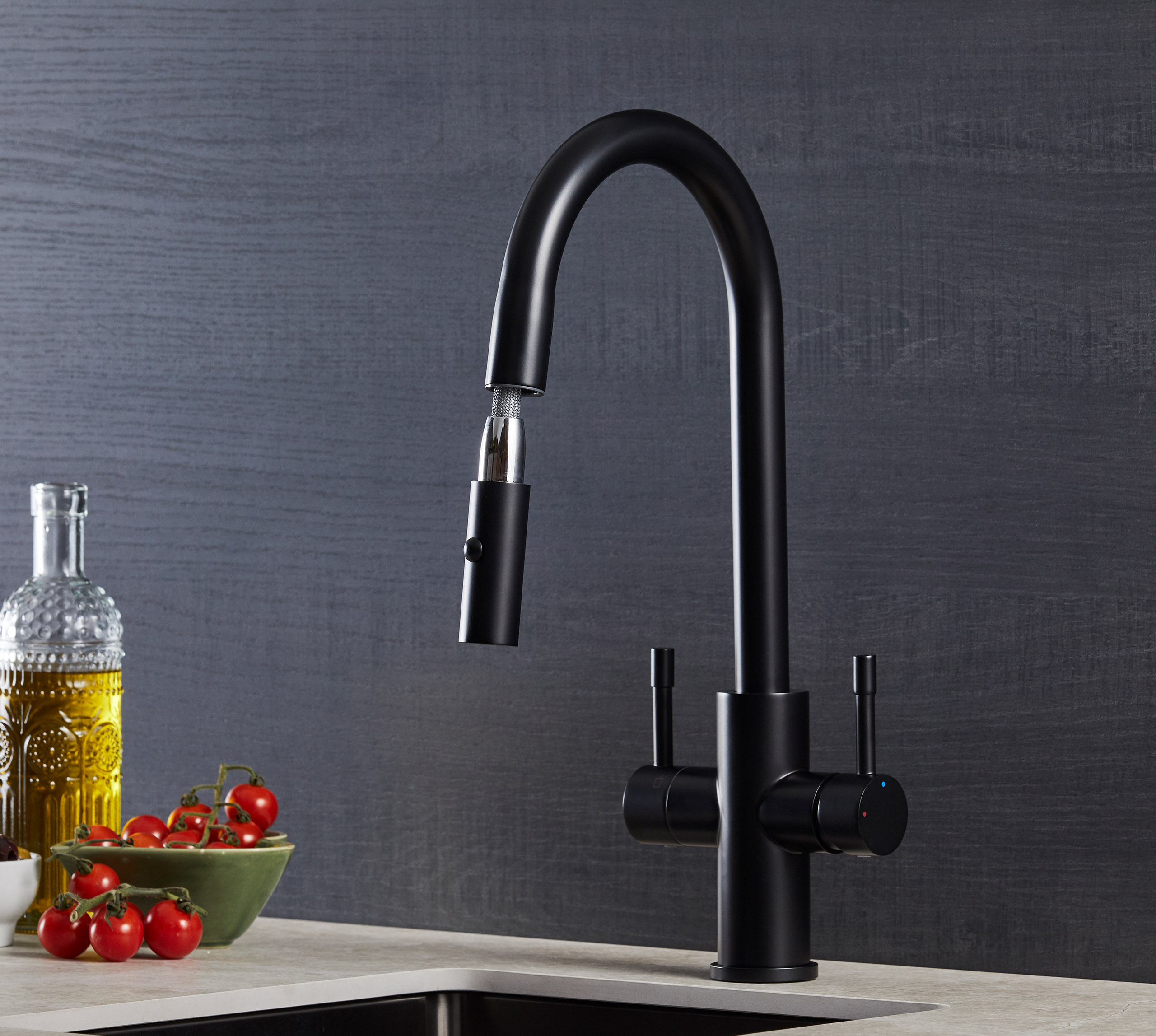 The matt black finish offers a refined, contemporary look that suits both minimalist and classic kitchen designs. The forward-only handle allows for easy installation even against walls or splashbacks, while the flexible pull-out spout provides added reach for cleaning, rinsing and filling pots.