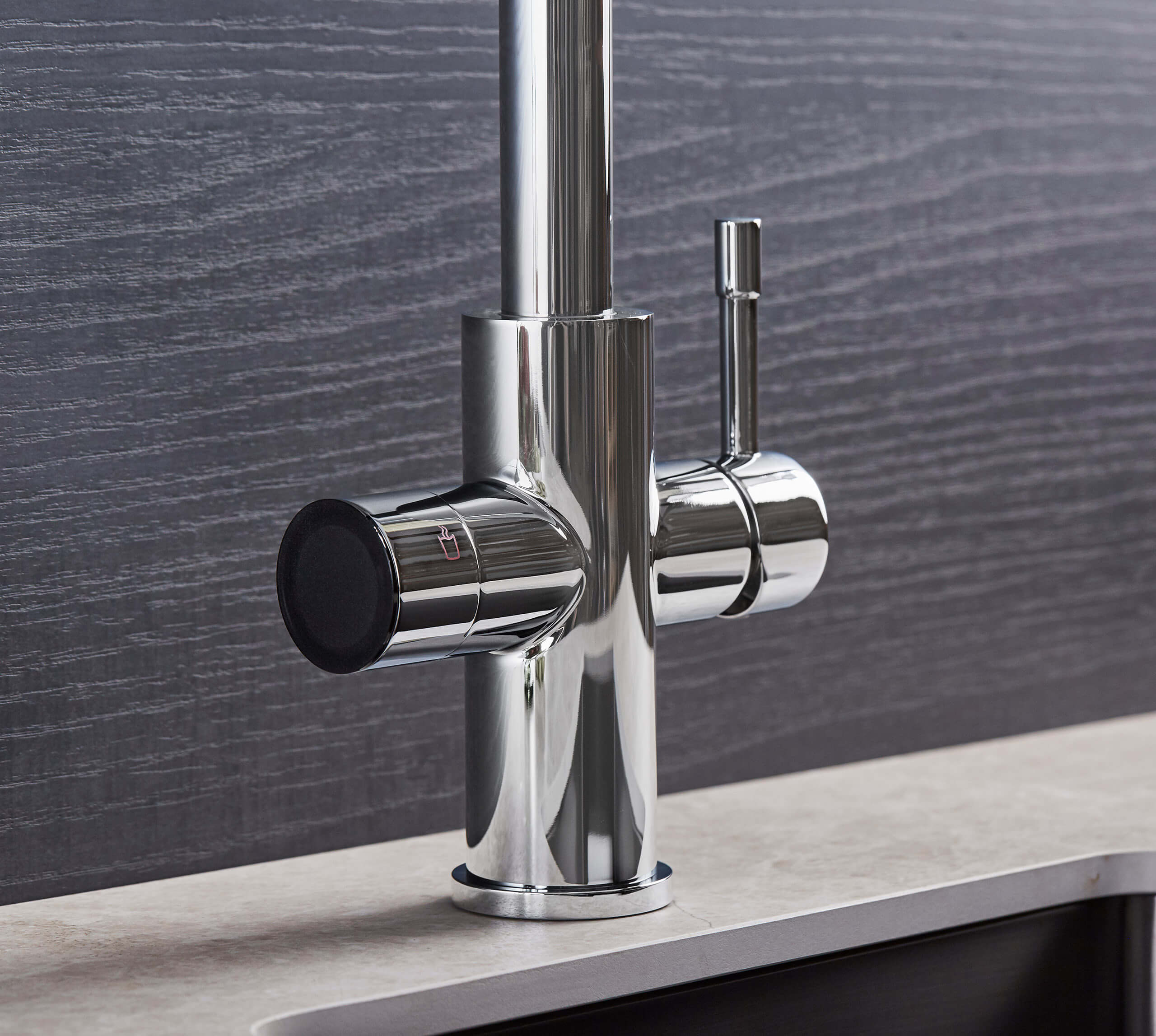 The forward only handle design allows Sapphire to be installed close to walls or splashbacks, making it ideal for compact kitchens and space restricted sink layouts. Beneath the sink, a compact digital boiler tank heats water efficiently and automatically reheats as it is used, ensuring near boiling water is always available on demand while fitting neatly inside standard kitchen cupboards.