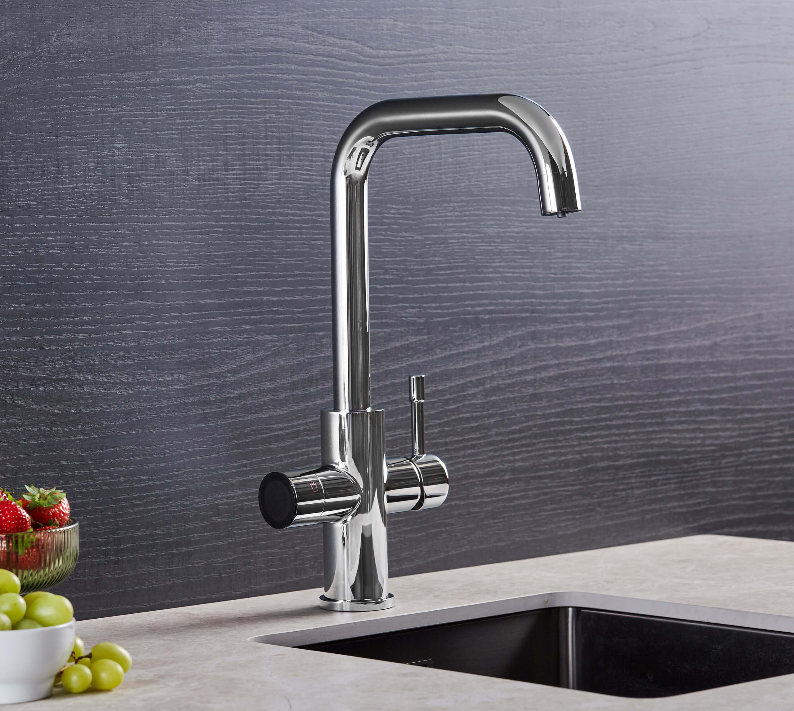 4-in-1 water delivery – Provides hot, cold, 98°C boiling and filtered drinking water from a single tap, removing the need for a kettle or separate filter jug.