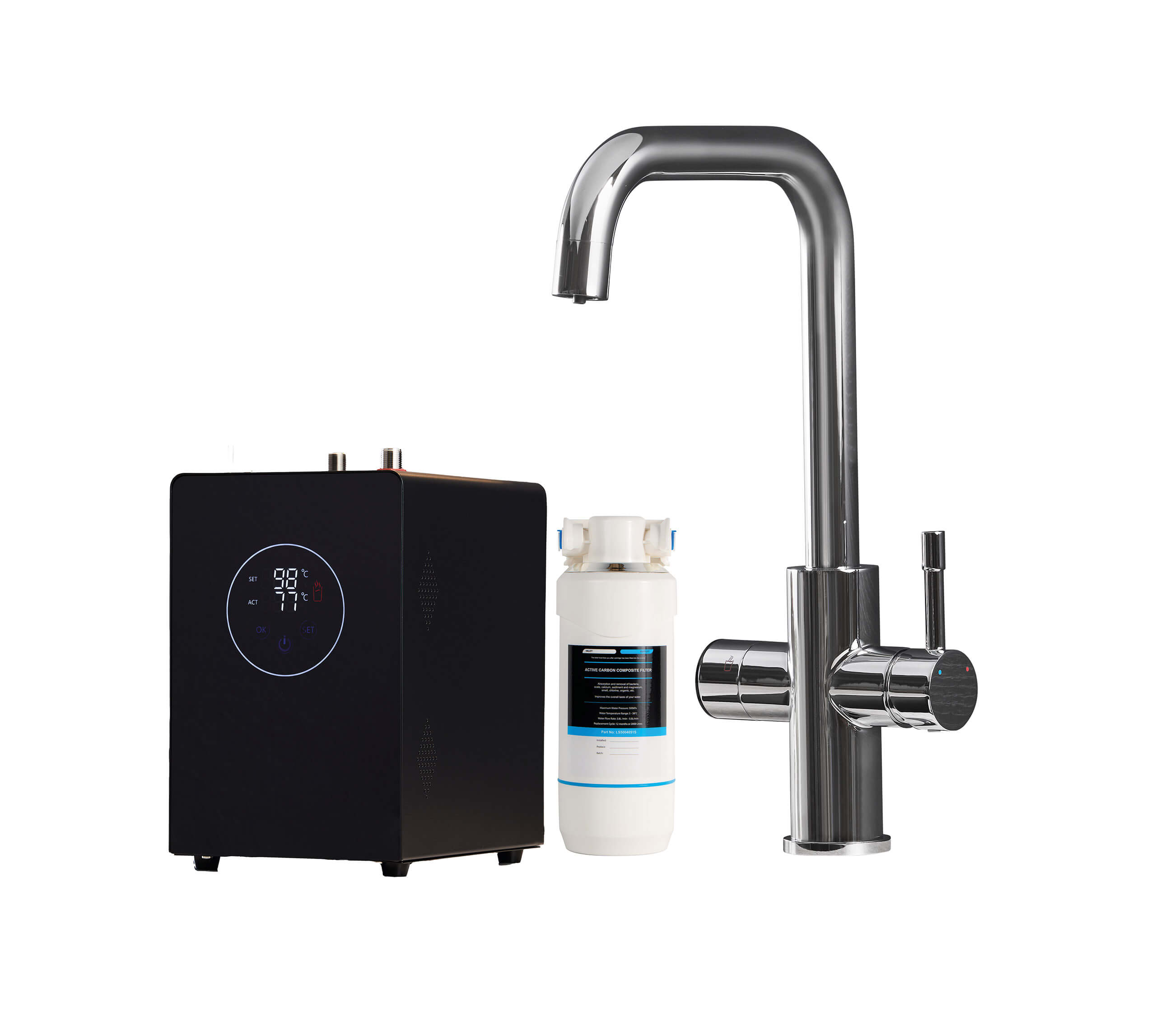 4-in-1 functionality – Supplies hot, cold, 98°C boiling and filtered drinking water from a single tap, removing the need for a kettle or separate filter system.