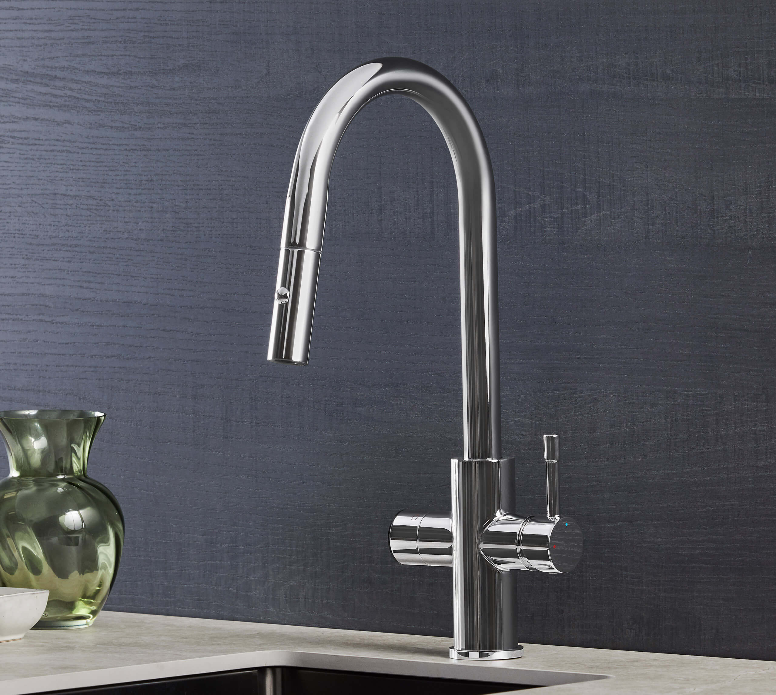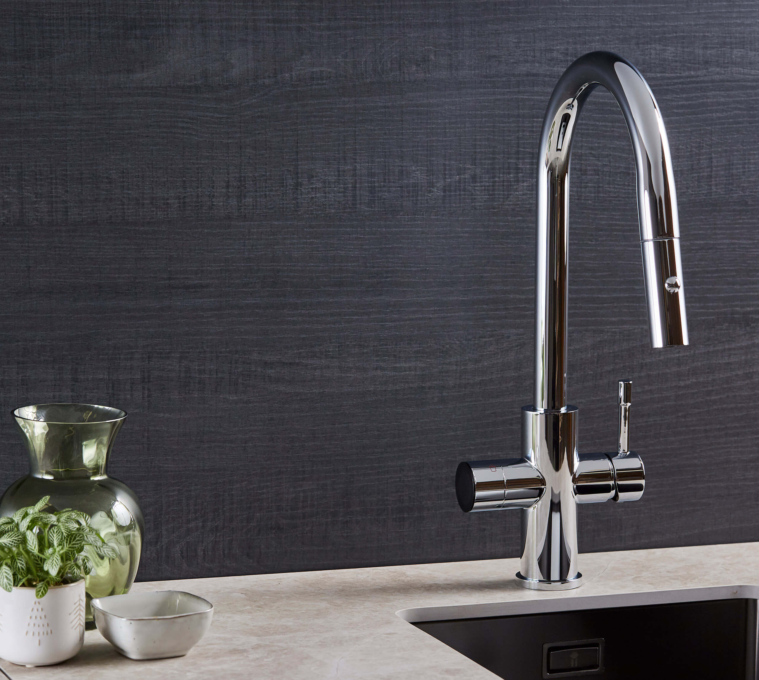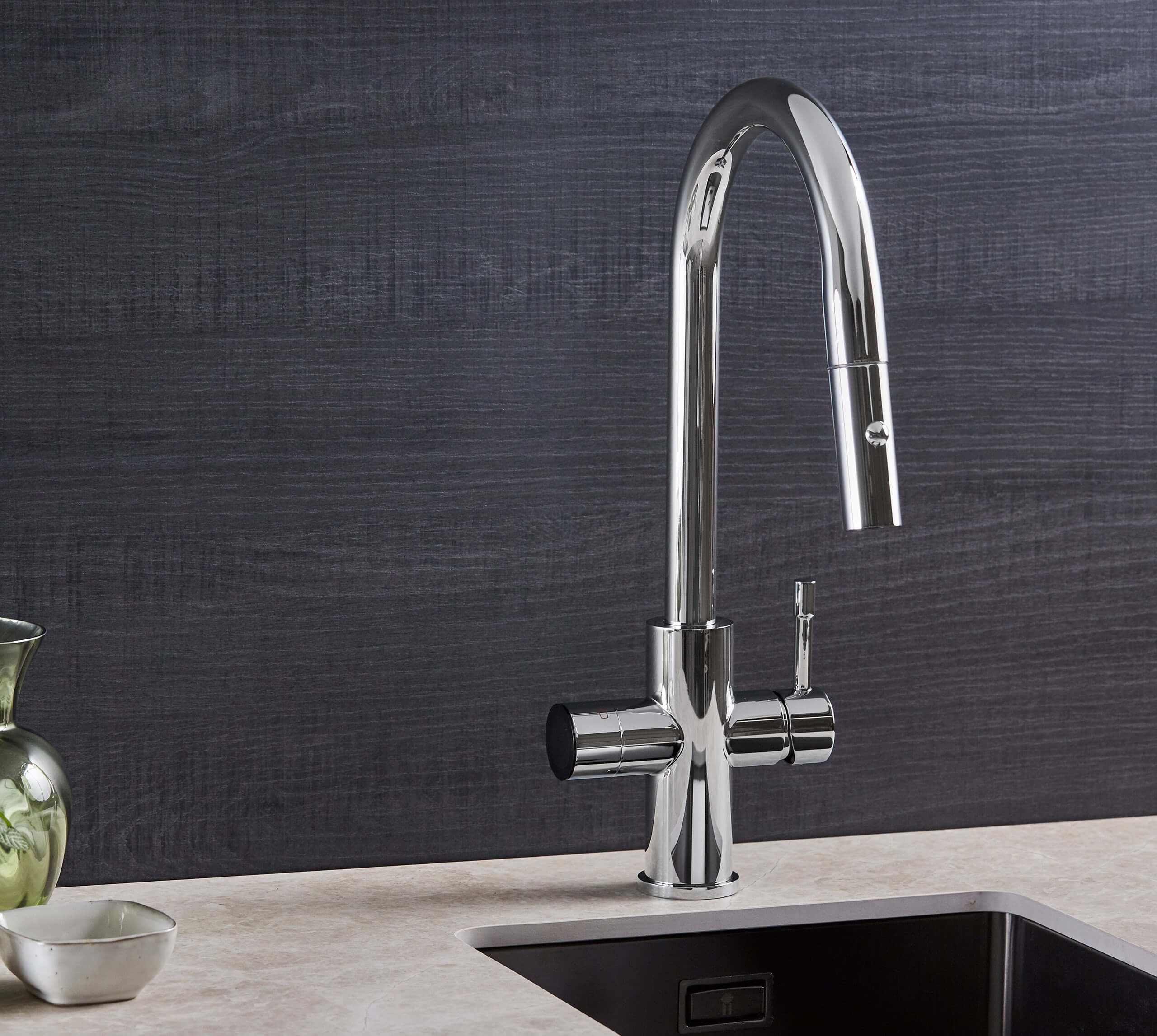 Supplying hot, cold, instant 98°C boiling and filtered drinking water from a single outlet, this pull out boiling water tap removes the need for kettles and separate filter jugs. Everything you need for cooking, washing up and food preparation is available instantly, helping to keep worktops clear and everyday routines running smoothly.