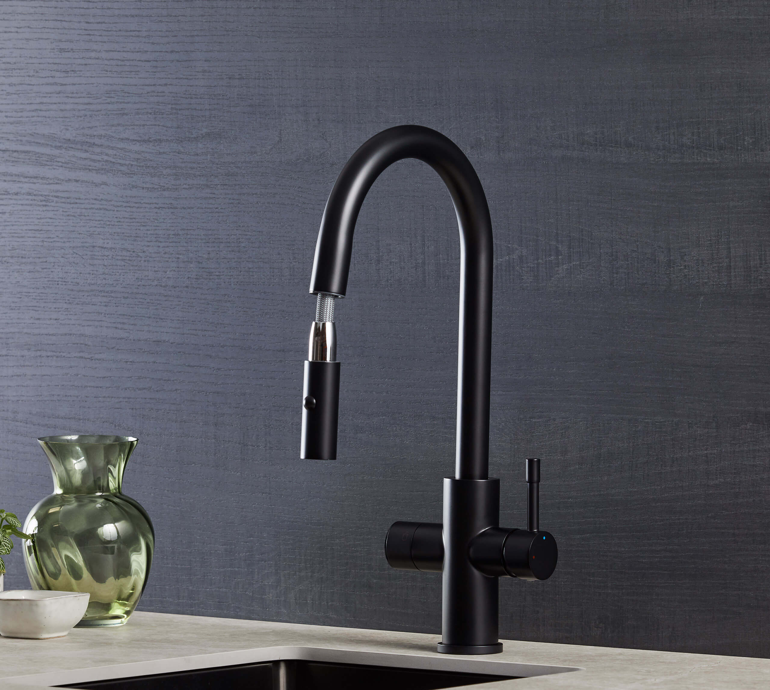 Supplying hot, cold, instant 98°C boiling and filtered drinking water from a single outlet, this matt black boiling water tap removes the need for kettles and separate filter jugs. Everything you need for cooking, hot drinks and everyday kitchen tasks is available instantly, helping to keep worktops clear and routines efficient.